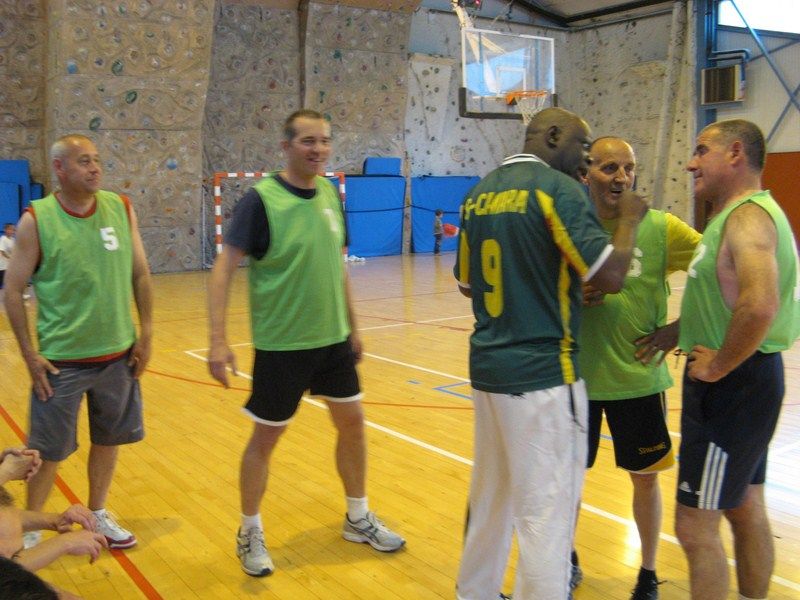 Merci bien sûr à Marie-Laure et Myl-ne qui ont bien organisé leur match et contrôlé les concours de lucky luke, ainsi que Laurent et Serge. Merci a Jeannot d'avoir su nous concocter un match âpre et serré avec un très bon niveau de basket et une prolongtion avec tous ses benjamins et merci à lui d'avoir invité son fils, Yannick, joueur pro qui a participé au concours à 3 pts et aux matchs séniors garcons. Merci à Gilles d'avoir su motiver les séniors 2 et d'avoir amusé la galerie avec leurs perruques. Vous l'avez deviné, apres les organisateurs, c'est au tour des participants d'être remerciés. Organisée en 3 semaines, cette journée est aussi leur réussite. Ils m'ont fait l'honneur de répondre à mes invitations et j'étais très content de leur présence: merci aux anciens, Doudou, Maurice Rosin, Phillippe Calletti, Serge Pellegrini, Jacky Belmonte, et Jeannot et aux autres anciens joueurs présents. Et les anciennes, enfin moins anciennes que les anciens, représentant les séniors filles de la fin des années 90 qui ont joué au plus haut niveau régional. Elles nous ont proposé du bon basket et on a pu apercevoir, selon moi, leurs excellents fondamentaux. Elles étaient toutes enchantées de venir et elles ont répondu présentes 3 semaines après, c'est super. Bref, merci aux joueurs, arbitres, bénévoles, coach, marqueurs-chronometreurs, parents et amis qui ont garni les tribunes toute la journée.